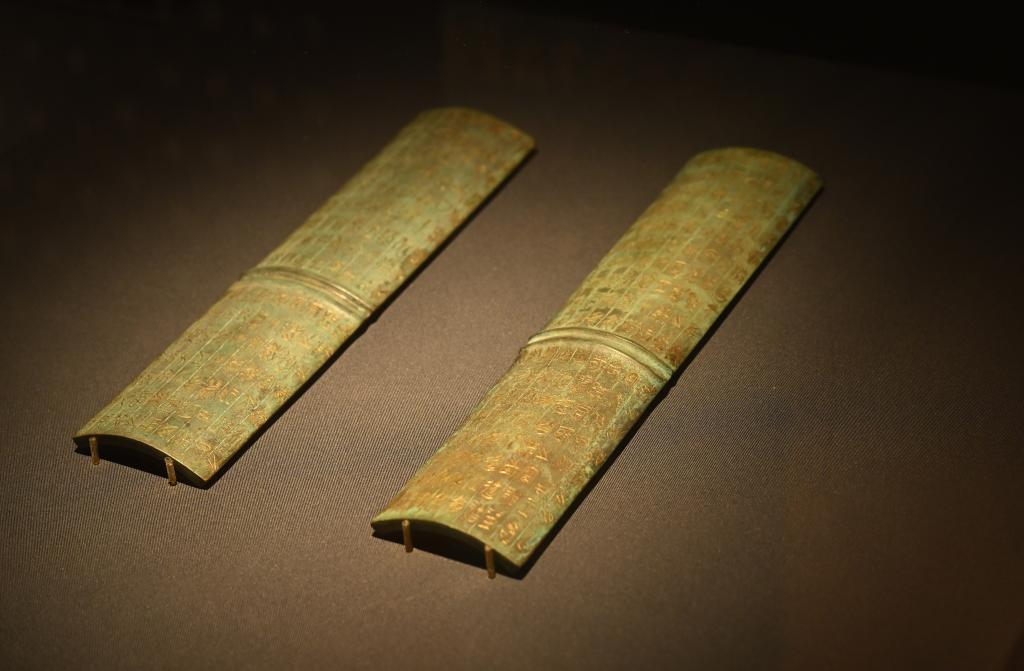 壽縣邱家花園出土的鄂君啟金節(jié)(復制品),原件現(xiàn)收藏于中國國家博物館和安徽博物院。新華社記者 周牧 攝