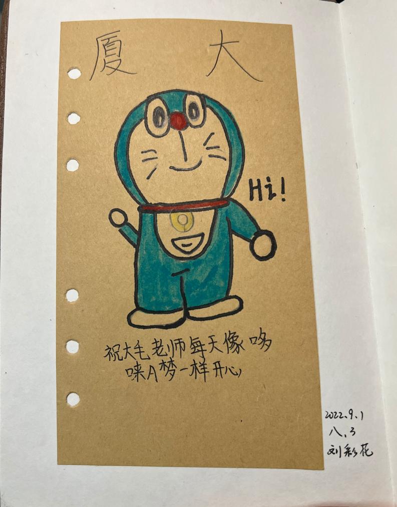 這個故事讓“00后”毛延廷感動不已,也成為他立志支教的重要動因。毛延廷初到關橋中學時,八年級的孩子送給他一幅畫:“毛老師,希望你能像機器貓一樣,教給我們新知識!”這個簡短的“歡迎儀式”讓毛延廷更加堅定了“站好這班崗”的信念。