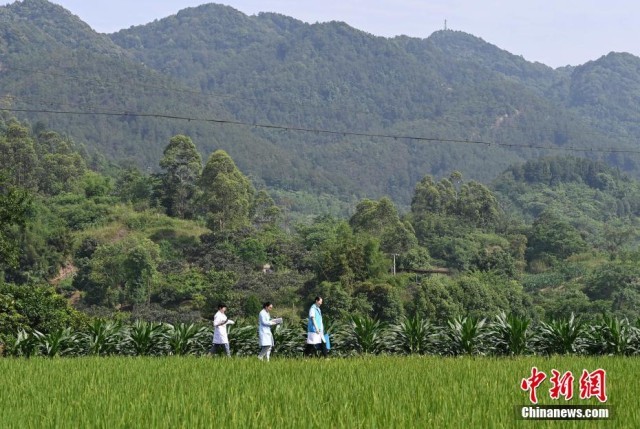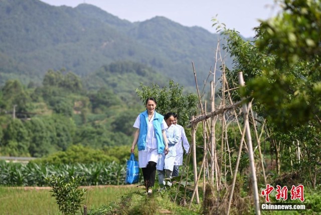 圖為福祿鎮(zhèn)衛(wèi)生院家庭醫(yī)生團(tuán)隊(duì)的醫(yī)務(wù)人員行走在鄉(xiāng)間小路上。