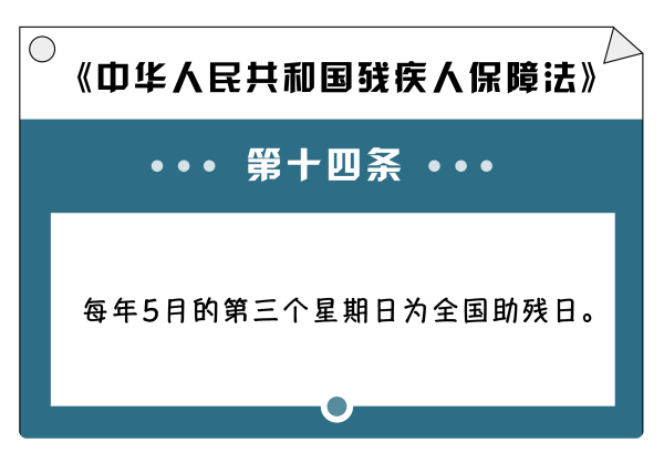 《中華人民共和國殘疾人保障法》第十四條規(guī)定,每年5月的第三個(gè)星期日為全國助殘日。
