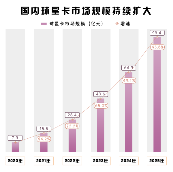 從艾瑞咨詢發(fā)布的數(shù)據(jù)來看,2024年,中國球星卡行業(yè)市場規(guī)模將達到64.9億元,相比2023年增長49.1%,預計在2025年其市場規(guī)模將突破90億元。