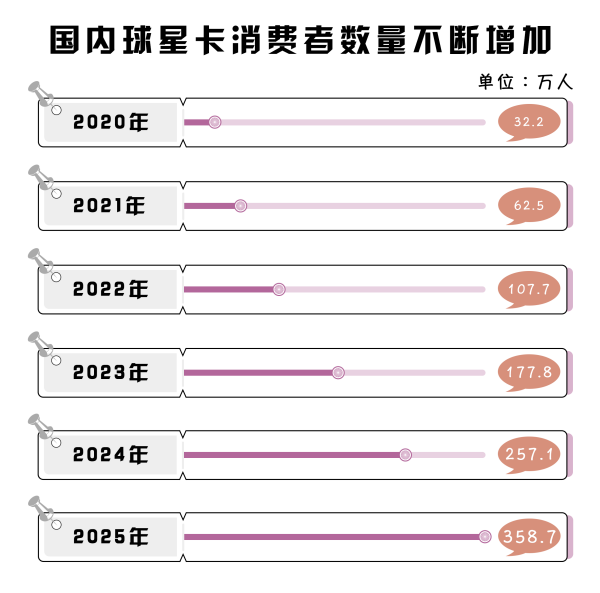 同時,國內(nèi)球星卡消費者數(shù)量不斷增加,2024年,國內(nèi)球星卡消費者人數(shù)預計達到257.1萬人,預計2025年國內(nèi)球星卡消費者人數(shù)將升至358.7萬。