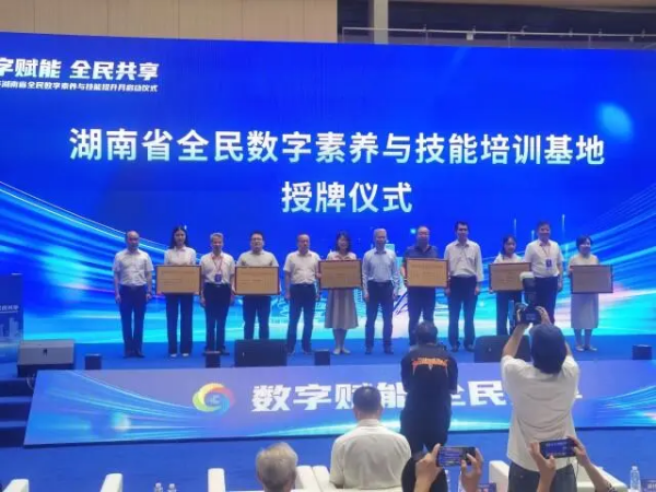 現(xiàn)場為湖南省全民數(shù)字素養(yǎng)與技能培訓基地代表授牌