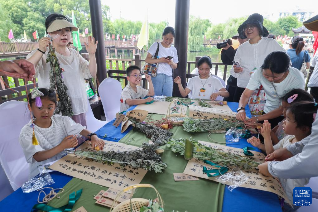 當(dāng)日,浙江省湖州市吳興區(qū)東林鎮(zhèn)舉辦“慶端午 劃菱桶”水鄉(xiāng)端午趣味民俗活動(dòng),來自東林鎮(zhèn)各村的村民們在泉益村參加了水鄉(xiāng)劃菱桶比賽、荷塘釣小龍蝦、做艾草花束、包粽子等端午趣味民俗活動(dòng),在初夏時(shí)節(jié)呈現(xiàn)江南水鄉(xiāng)特有的迎端午氣氛。