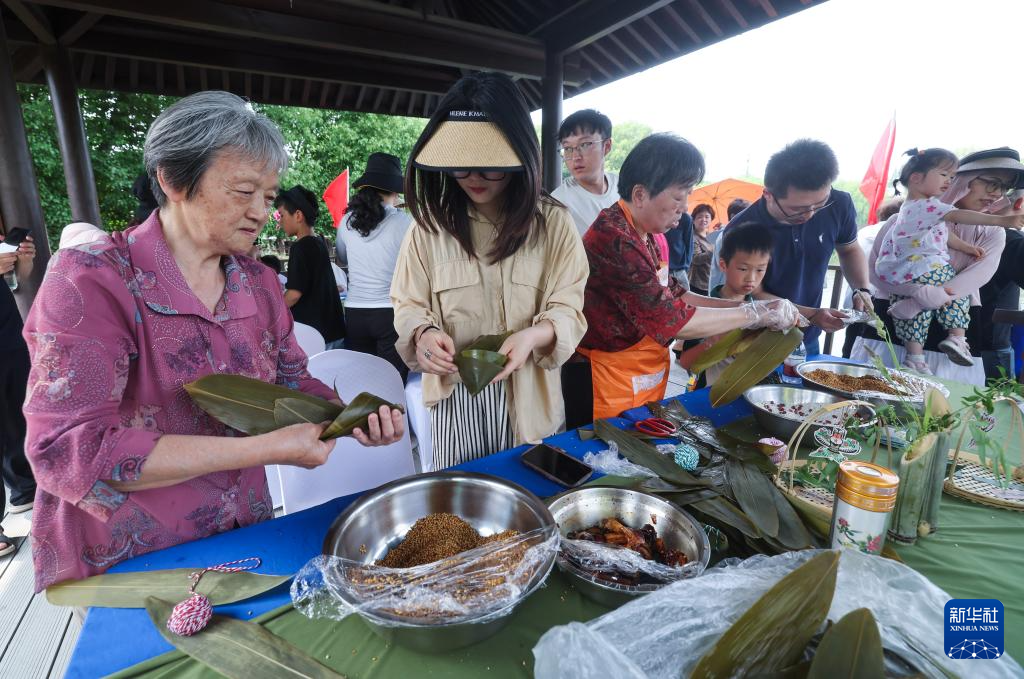 當(dāng)日,浙江省湖州市吳興區(qū)東林鎮(zhèn)舉辦“慶端午 劃菱桶”水鄉(xiāng)端午趣味民俗活動(dòng),來自東林鎮(zhèn)各村的村民們?cè)谌娲鍏⒓恿怂l(xiāng)劃菱桶比賽、荷塘釣小龍蝦、做艾草花束、包粽子等端午趣味民俗活動(dòng),在初夏時(shí)節(jié)呈現(xiàn)江南水鄉(xiāng)特有的迎端午氣氛。