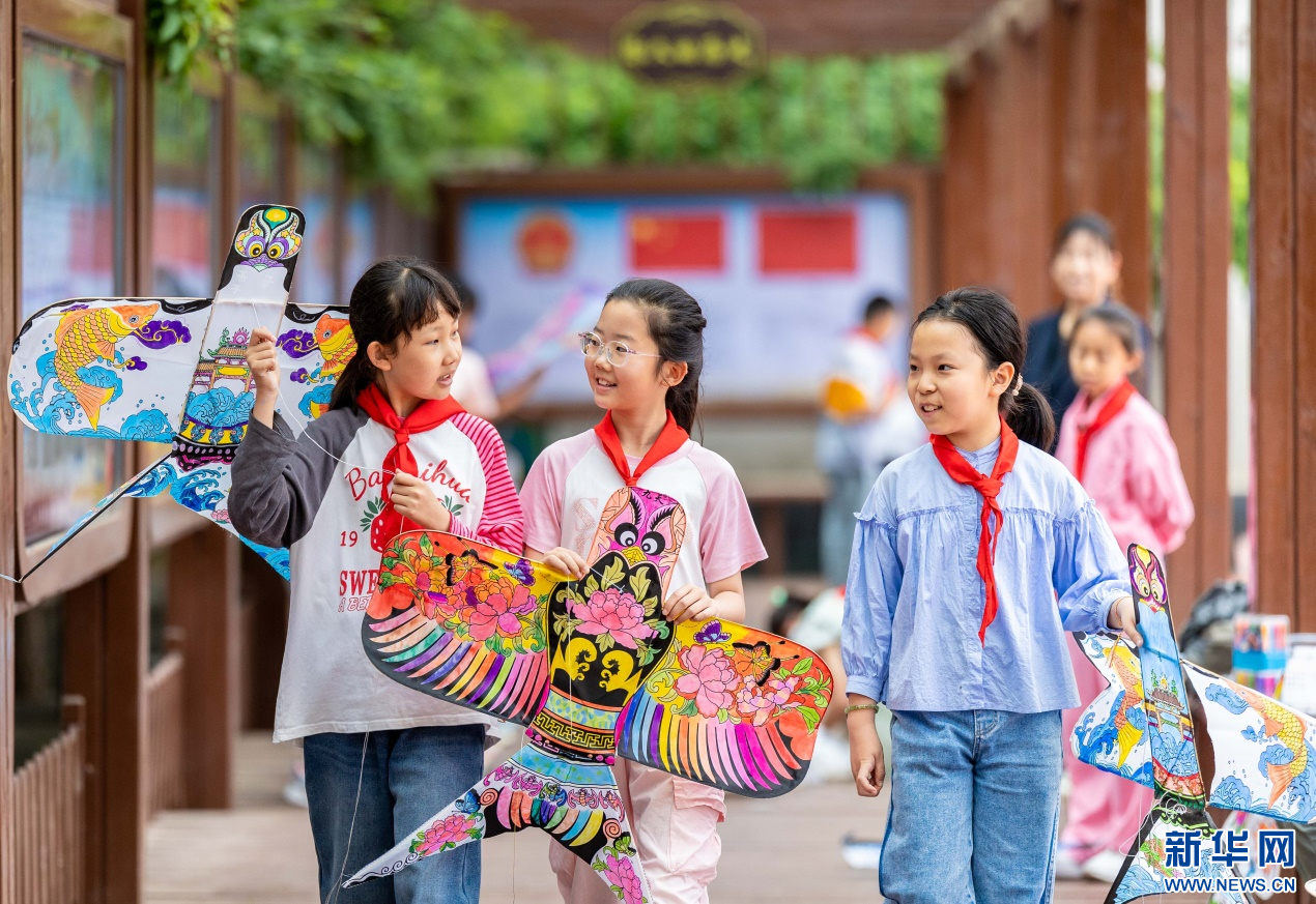 6月6日,呼和浩特市玉泉區(qū)五塔寺東街小學(xué)學(xué)生在“我們的節(jié)日·端午”主題活動(dòng)上放飛紙鳶。新華網(wǎng)發(fā)(丁根厚 攝)