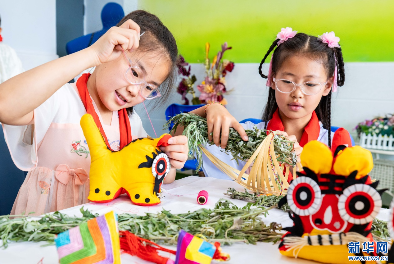 6月6日,呼和浩特市玉泉區(qū)通順街小學(xué)學(xué)生在“我們的節(jié)日·端午”主題活動(dòng)上縫制布老虎。新華網(wǎng)發(fā)(丁根厚 攝)