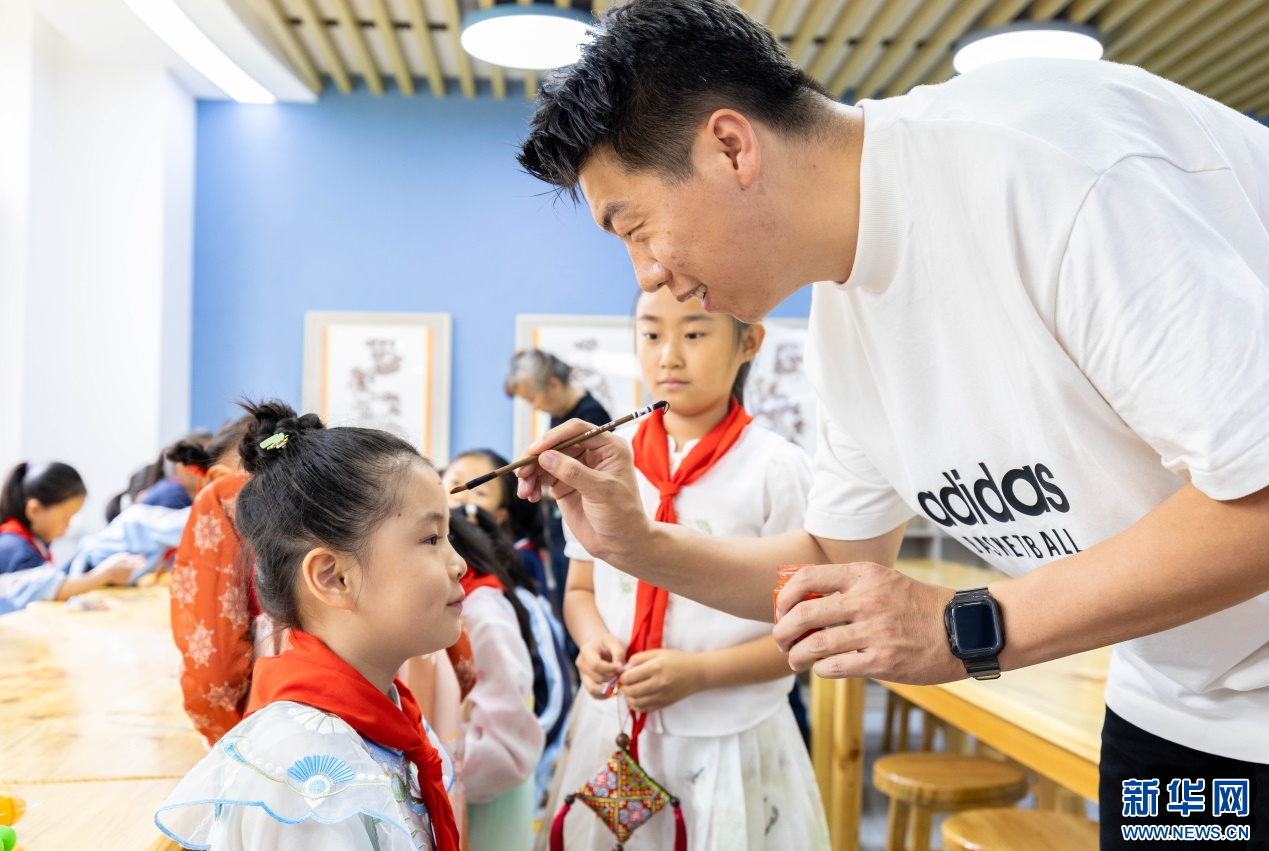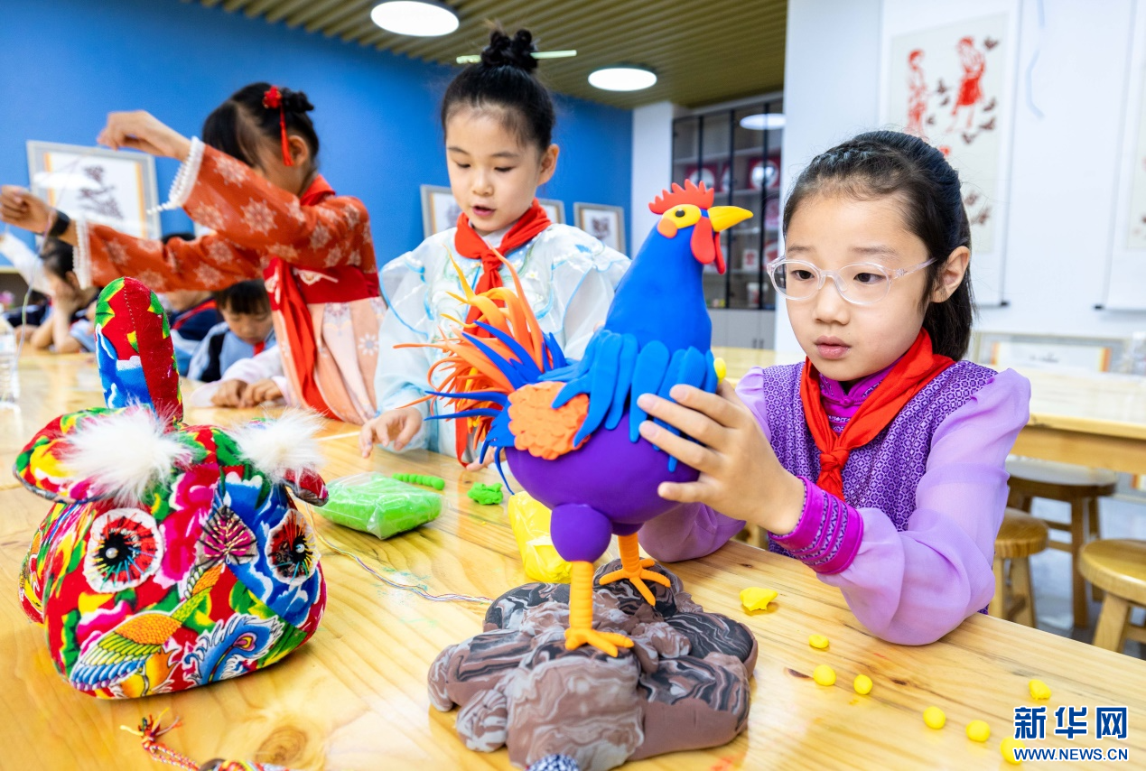 6月6日,呼和浩特市玉泉區(qū)南柴火市街小學(xué)學(xué)生在“我們的節(jié)日·端午”主題活動(dòng)上繪制端午辟五毒雄雞。新華網(wǎng)發(fā)(丁根厚 攝)