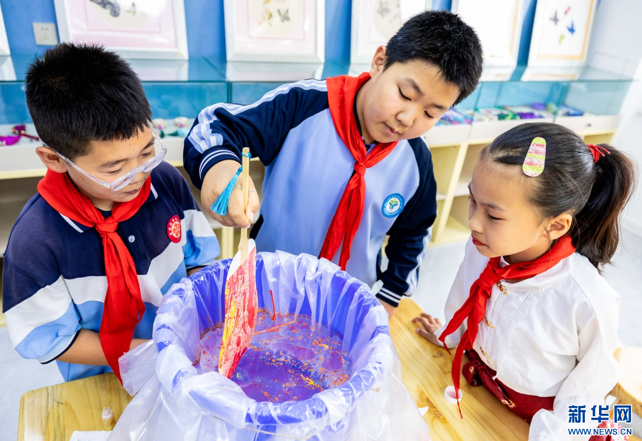 6月6日,呼和浩特市玉泉區(qū)南柴火市街小學(xué)學(xué)生在“我們的節(jié)日·端午”主題活動(dòng)上制作漆扇。新華網(wǎng)發(fā)(丁根厚 攝)