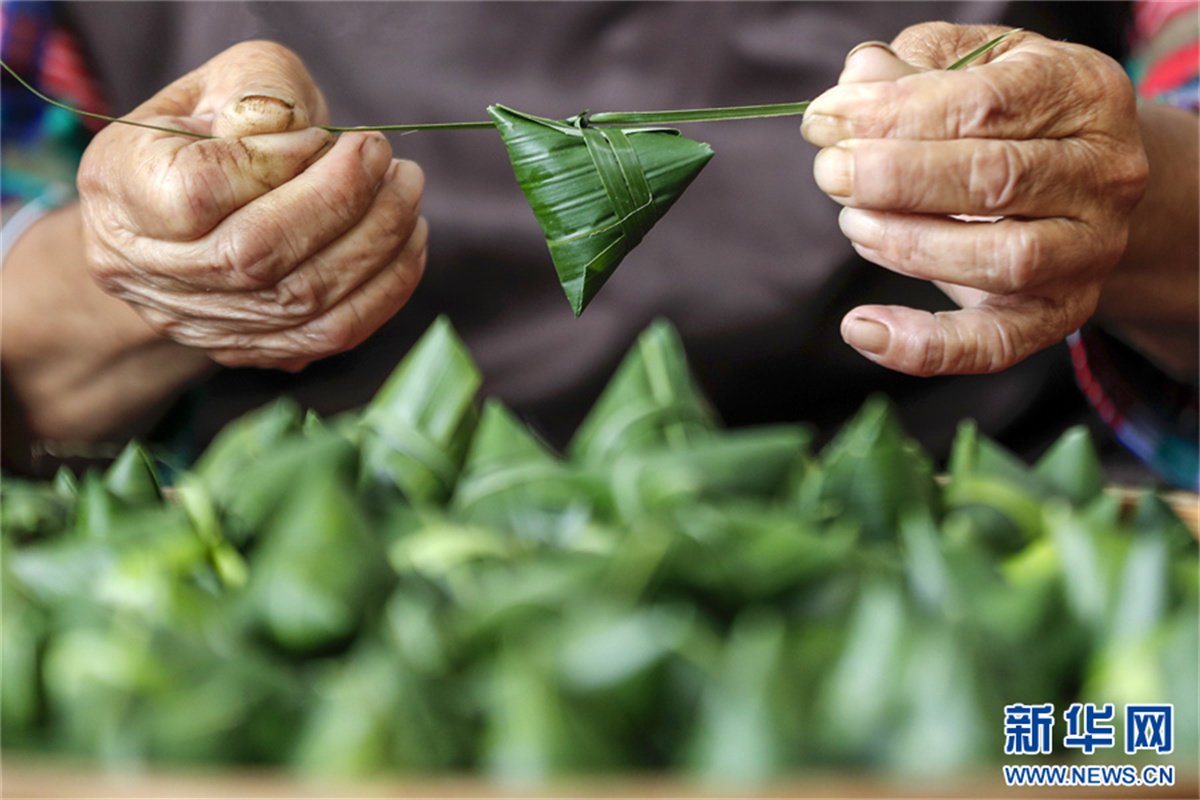 端午臨近,在安徽省黃山市祁門縣古溪鄉(xiāng)際源村,茶工以祁門紅茶為“餡料”,用傳統(tǒng)包粽子的方法,純手工制作“粽茶”?!棒詹琛毙∏闪岘嚕莩鰜淼牟铚?,既有箬葉香,又有紅茶香,好看又好喝的“粽茶”,深受消費者的喜愛。新華網(wǎng)發(fā)(施亞磊 攝)