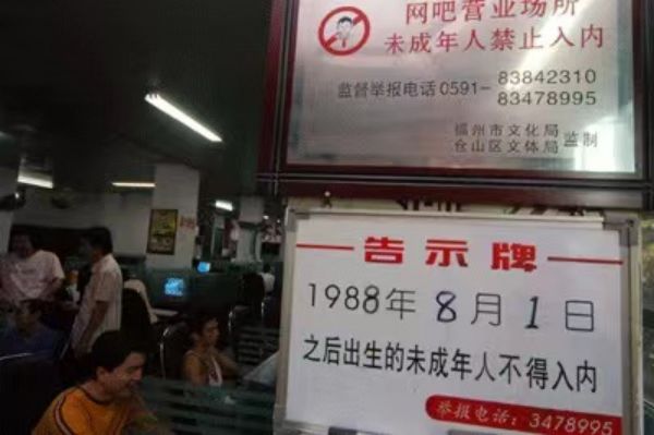 圖為2006年,福州市某網(wǎng)吧禁止未成年人入內(nèi)的標(biāo)識牌。 (來源網(wǎng)絡(luò))