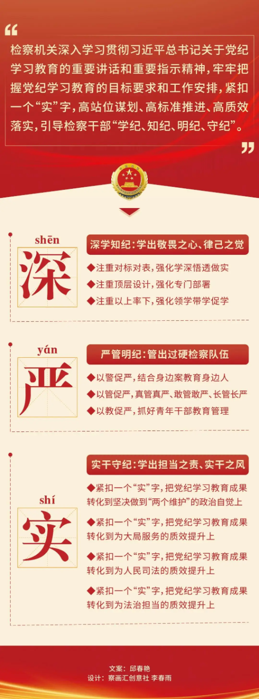 怎樣讓黨紀學習教育走深走實,學出成效?早在今年4月8日的最高檢黨組會上研究部署黨紀學習教育工作時,應勇就定了調:緊扣一個“實”字,開展黨紀學習教育要求上要實、效果上要實、形式上要實。