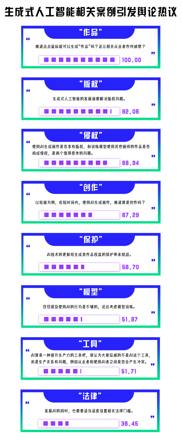 與生成式人工智能有關的案件一經(jīng)宣判,便引發(fā)了輿論廣泛關注,“作品”“版權”“模型”“工具”“法律”等詞語頻繁被提及,成為公眾討論的焦點。