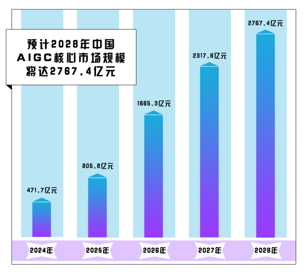 艾媒咨詢發(fā)布的《2023年中國AIGC行業(yè)發(fā)展研究報告》顯示,2024年我國生成式人工智能行業(yè)核心市場規(guī)模預計為471.7億元,2028年將達2767.4億元,規(guī)模相較2024年翻了近5倍。持續(xù)擴大的市場規(guī)模,也面臨著風險和挑戰(zhàn)。