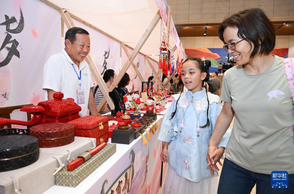 8月7日,游客在非遺市集上參觀傳統(tǒng)工藝品。