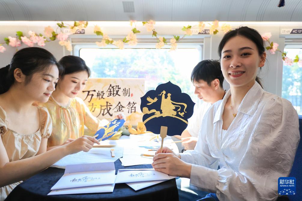當(dāng)日,中國鐵路上海局集團(tuán)有限公司南京客運段在G7393次和G132次高鐵列車上開展“七夕寧相匯 文博敘匠心”主題活動?;顒又校瑏碜阅暇┒嗉椅牟﹫鲳^的工作人員進(jìn)行傳統(tǒng)手工藝展示,并邀請旅客互動體驗,讓旅客在旅途中感受傳統(tǒng)文化的魅力,迎接七夕節(jié)的到來。