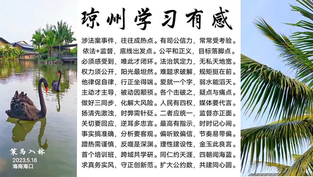 2020年9月22日,參加中央網(wǎng)信辦、中央政法委指導(dǎo)的“大國小鮮 基層之治”網(wǎng)絡(luò)主題宣傳活動,發(fā)言提出:社會治理就是“烹小鮮”,這個看起來很大的題目,核心還是人,每一個人的合理需求和合法權(quán)益都是社會治理服務(wù)的對象。依法維護(hù)廣大人民群眾和一家一戶一人的合法權(quán)益,才能真正維護(hù)和諧安定的社會秩序。守護(hù)好萬家燈火就是我們工作和服務(wù)的內(nèi)涵,用繡花針工夫做好社會治理大文章。媒體通過作品的傳播力、影響力、公信力,真實(shí)還原治理一線“烹小鮮”行為,生動呈現(xiàn)基層守正創(chuàng)新、擔(dān)當(dāng)作為的故事細(xì)節(jié),同時以共情力和同情心洞察百姓期待與訴求。