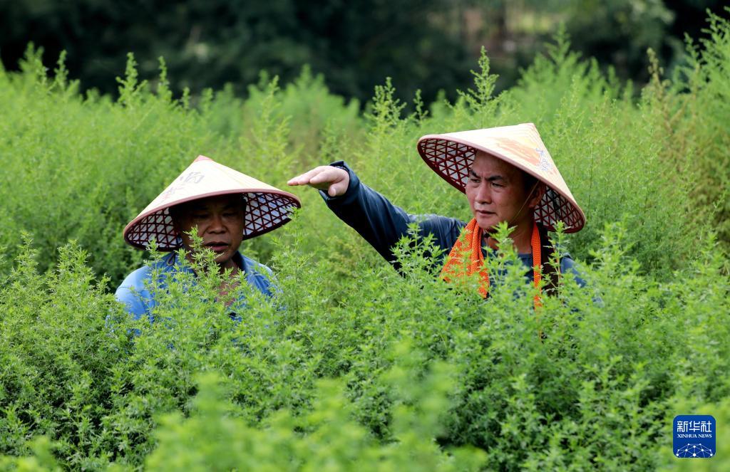 近年來,當(dāng)?shù)夭捎谩肮荆兀蒲袉挝唬献魃纾r(nóng)戶”的模式,積極發(fā)展青蒿產(chǎn)業(yè),生產(chǎn)的青蒿素主要出口到非洲國家,用來作為抗擊瘧疾的基藥。青蒿種植已逐漸成為當(dāng)?shù)剜l(xiāng)村振興的主要產(chǎn)業(yè)之一。