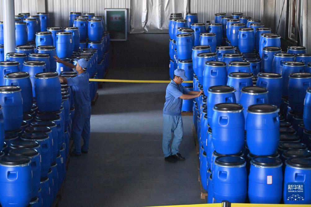 在廣西仙草堂制藥有限責(zé)任公司,工人在搬運(yùn)青蒿素(8月27日攝)。