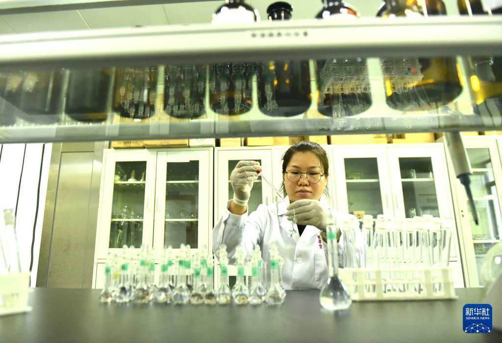在廣西仙草堂制藥有限責(zé)任公司,技術(shù)人員在檢測青蒿素(8月27日攝)。