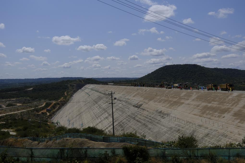 這是6月18日在肯尼亞南部馬庫(kù)埃尼拍攝的由中企承建的斯瓦克大壩。(新華社記者林晶攝)