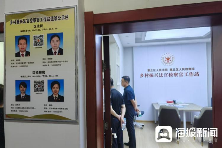 葉貴芬?guī)ьI(lǐng)采訪團參觀了村里的鄉(xiāng)村振興法官檢察官工作站,按照工作站值班公示,法官、檢察官各有兩名,分時段在村中駐站工作,為村民提供法律幫助。