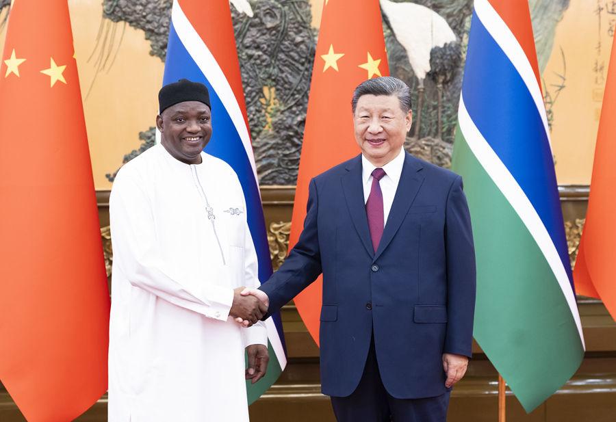 9月6日下午,國家主席習(xí)近平在北京人民大會堂會見來華出席中非合作論壇北京峰會的岡比亞總統(tǒng)巴羅。