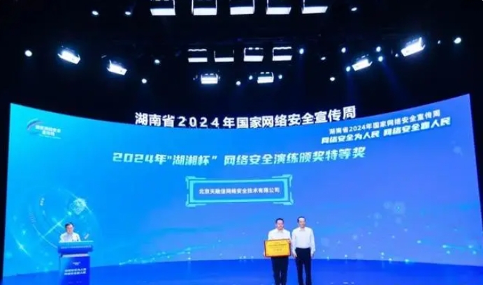 啟動儀式上,“中國好人”、警察、企業(yè)家、中小學(xué)生等10位代表聯(lián)合宣讀《共建網(wǎng)絡(luò)安全倡議》,倡議社會各界誠信用網(wǎng)、合規(guī)用網(wǎng)、安全上網(wǎng)、文明上網(wǎng)?,F(xiàn)場舉行了2024年“湖湘杯”網(wǎng)絡(luò)安全應(yīng)急演練頒獎儀式,北京天融信網(wǎng)絡(luò)安全技術(shù)有限公司、綠盟(湖南)網(wǎng)絡(luò)安全技術(shù)有限公司、湖南省電子信息產(chǎn)業(yè)研究院等20家單位分別榮獲特等獎及一、二、三等獎,楊浩東等為獲獎單位頒獎。