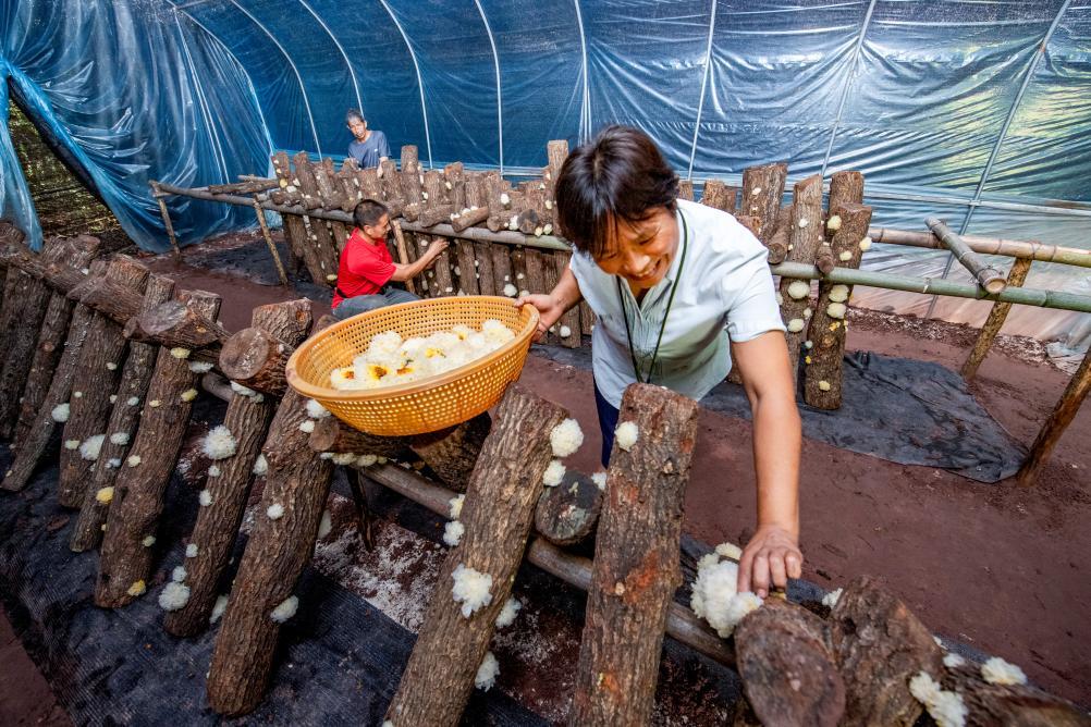 7月4日,巴中市通江縣陳河鎮(zhèn)河壩場(chǎng)村村民賈玉瓊一家在采摘自家種植的銀耳。新華社發(fā)(受訪單位供圖)
