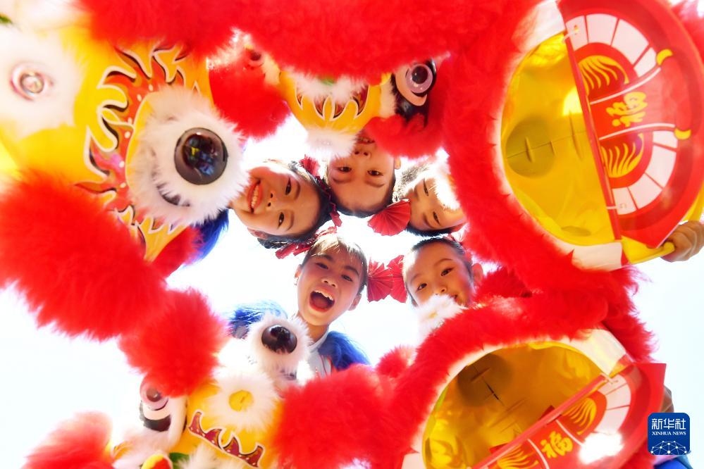 9月27日,在山東青島北仲路第一小學(xué)開展的國慶主題系列活動(dòng)上,小學(xué)生在表演獅子舞。