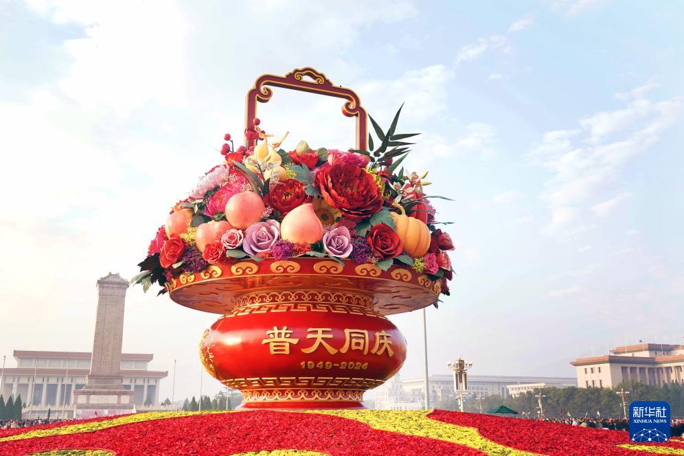 9月25日在天安門廣場(chǎng)拍攝的“祝福祖國(guó)”巨型花籃北側(cè)。