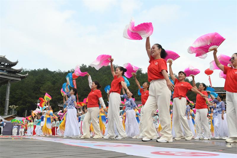 13日,參加活動(dòng)的隊(duì)伍走進(jìn)“村BA”發(fā)源地臺(tái)盤村,感受活力滿滿、熱氣騰騰的鄉(xiāng)村籃球賽的同時(shí),帶著廣場(chǎng)舞加入其中,參與墊場(chǎng)表演,為觀眾帶去歡樂,點(diǎn)燃運(yùn)動(dòng)激情,傳遞體育正能量。