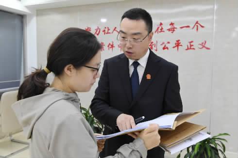 圖為10月17日,北京市第一中級(jí)人民法院執(zhí)行一庭法官孫鋒(右)在訴服大廳向執(zhí)行案件當(dāng)事人解答疑問(wèn)。耿冬 攝