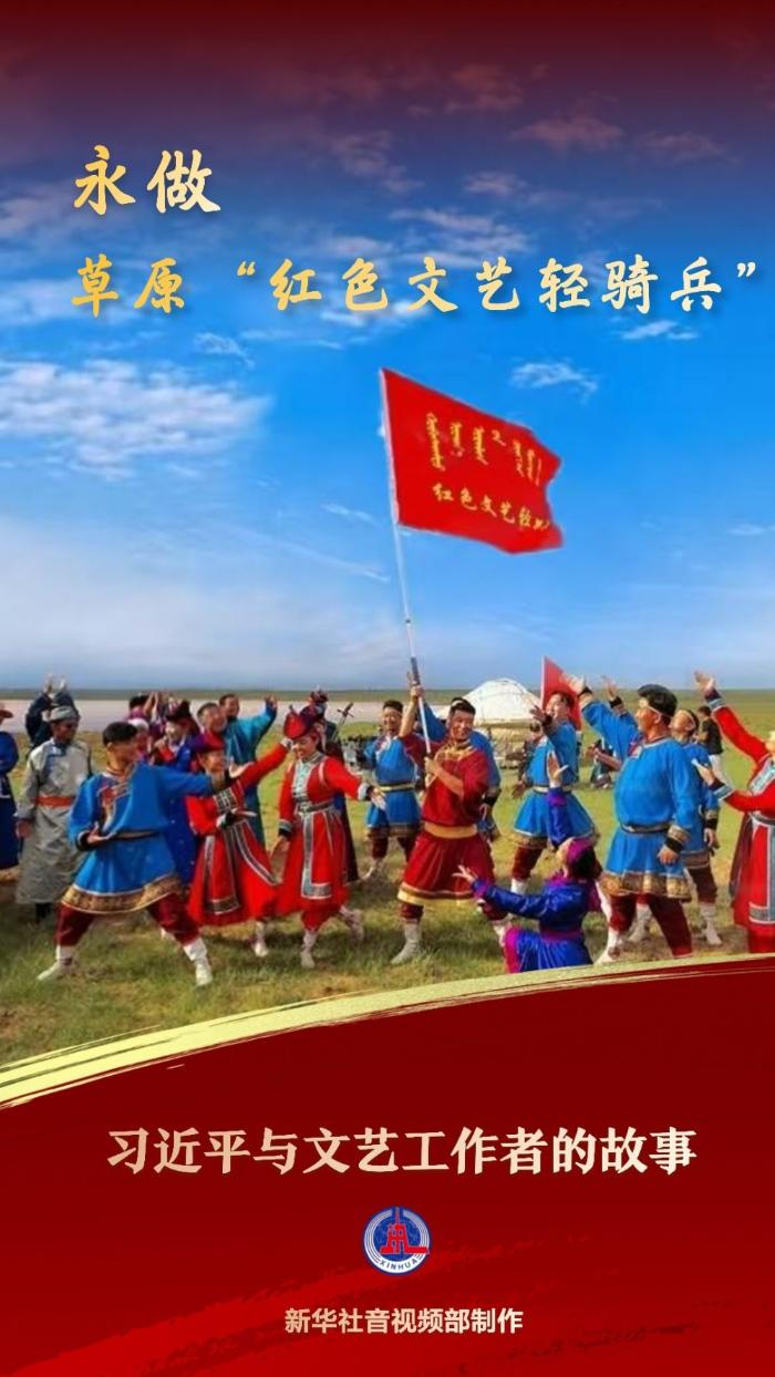 2017年,蘇尼特右旗烏蘭牧騎的16名隊(duì)員給習(xí)近平總書(shū)記寫(xiě)信,匯報(bào)烏蘭牧騎60年來(lái)的發(fā)展情況,表達(dá)為繁榮發(fā)展社會(huì)主義文藝事業(yè)作貢獻(xiàn)的決心。當(dāng)年,總書(shū)記回信勉勵(lì)他們大力弘揚(yáng)烏蘭牧騎優(yōu)良傳統(tǒng),永遠(yuǎn)做草原上的“紅色文藝輕騎兵”。