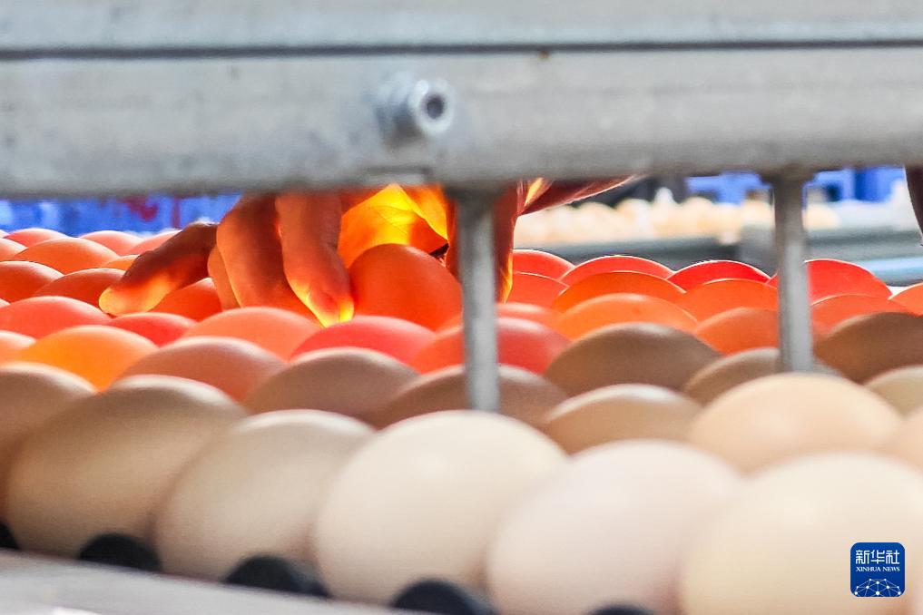 11月29日,在石門(mén)縣一家家禽加工企業(yè)碼蛋車(chē)間,工作人員在挑選雞蛋。