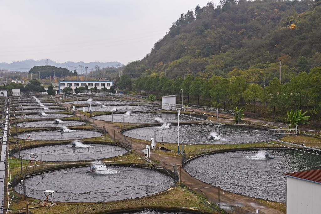 浙江省衢州市衢州鱘龍水產(chǎn)食品科技開(kāi)發(fā)有限公司的鱘魚魚池(12月6日)。新華社記者 盧哲 攝