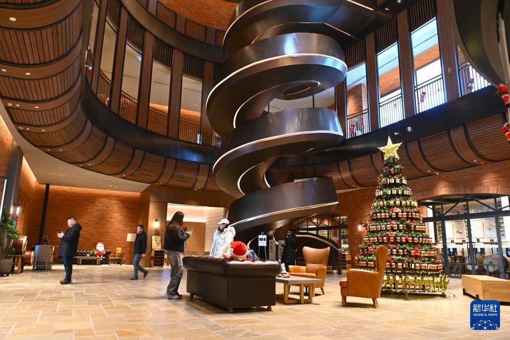 12月24日,游客在位于寧夏銀川市的圖蘭朵葡萄酒小鎮(zhèn)參觀(guān)葡萄酒廊。