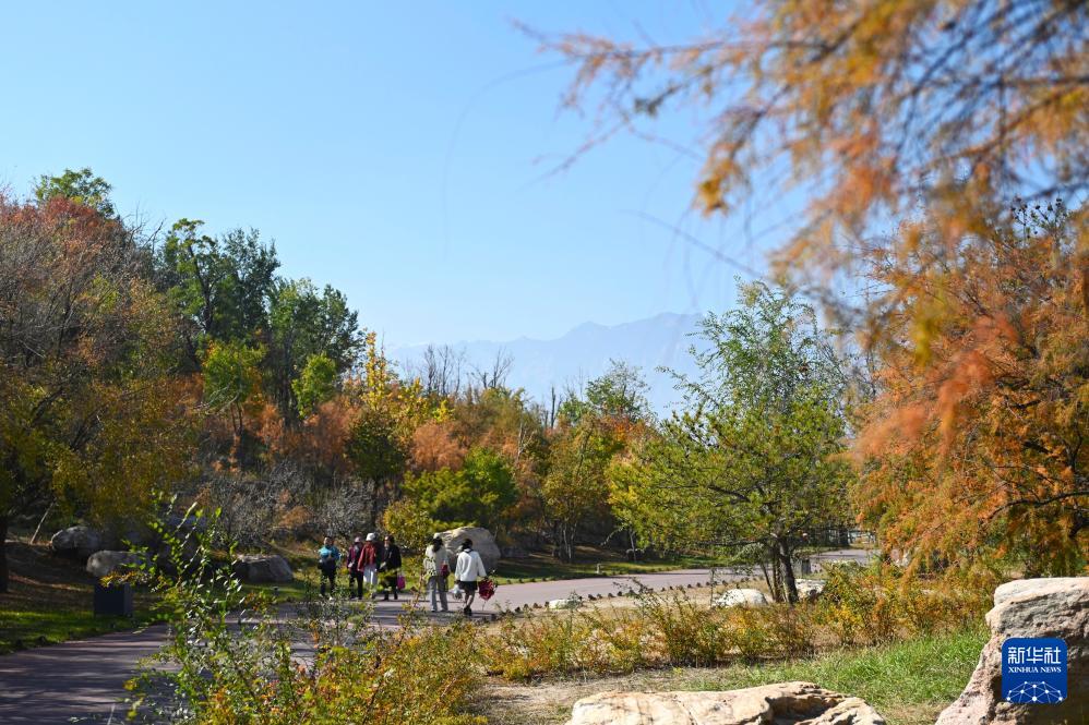 10月23日,游客在位于寧夏銀川市的志輝源石酒莊欣賞賀蘭山景色。