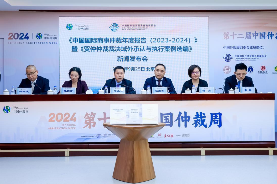 2024年9月25日,中國國際經(jīng)濟貿(mào)易仲裁委員會(以下簡稱“貿(mào)仲”)在北京召開新聞發(fā)布會,貿(mào)仲副主任兼秘書長王承杰在會上發(fā)布《中國國際商事仲裁年度報告(2023-2024)》(以下簡稱《2023-2024年度報告》)和《貿(mào)仲仲裁裁決域外承認與執(zhí)行案例選編》(以下簡稱《執(zhí)行案例選編》)。貿(mào)仲黨委書記兼副秘書長徐延波主持發(fā)布會。