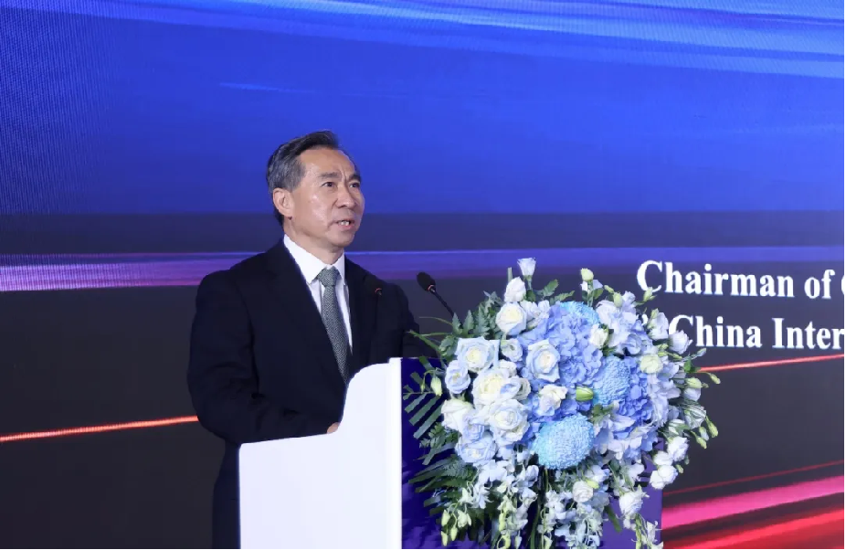 (中國國際貿(mào)易促進(jìn)委員會(huì)會(huì)長、貿(mào)仲主任任鴻斌在開幕式上致辭)