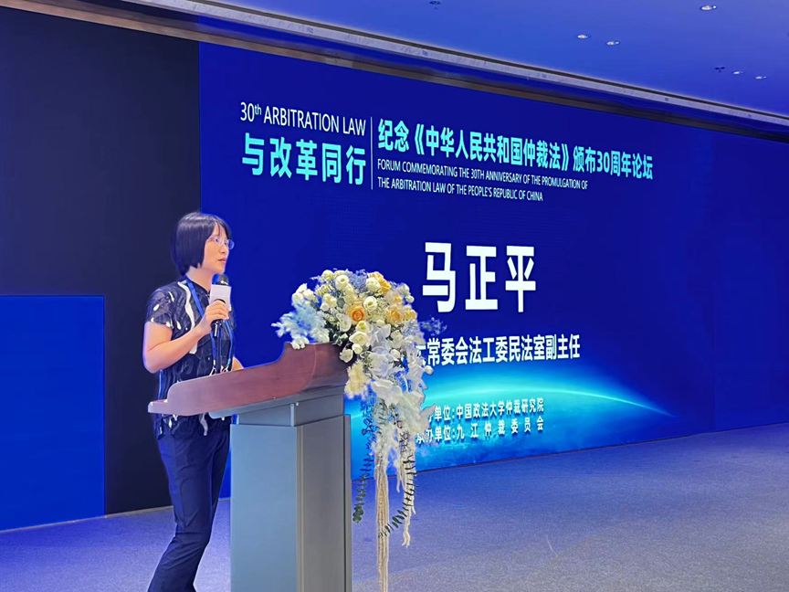 全國(guó)人大常委會(huì)法工委民法室副主任馬正平在致辭中回顧了仲裁法的發(fā)展歷程。她說(shuō),回望仲裁法的歷史,始于九十年代初,當(dāng)時(shí)的立法進(jìn)程是比較快的,全國(guó)人大常委會(huì)1994年6月份做的初審,8月份就已經(jīng)二審?fù)ㄟ^(guò)了??梢哉f(shuō),這部法律具有里程碑意義。很高興看到仲裁法實(shí)施30年來(lái),極大促進(jìn)了我國(guó)仲裁事業(yè)的蓬勃發(fā)展,化解了大量的糾紛,服務(wù)了經(jīng)濟(jì)社會(huì)發(fā)展的大局。同樣具有重大意義的是,在仲裁法頒布30周年之際,仲裁法迎來(lái)新一輪大修,相信修改后的仲裁法也必將進(jìn)一步保障我國(guó)仲裁事業(yè)的發(fā)展,促進(jìn)經(jīng)濟(jì)社會(huì)的發(fā)展。
