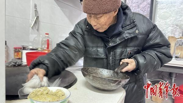 1月8日傍晚,雙峰村92歲的陳先生正在為妻子和兒子做晚飯。中青報·中青網(wǎng)見習記者 趙麗梅/攝