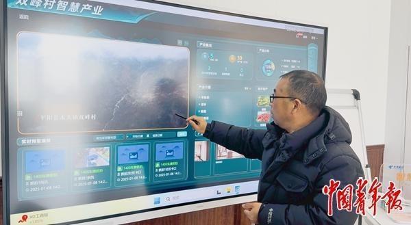 1月8日,雙峰村村支部書記陳家凱通過村里的智慧大屏查看村中的智慧產(chǎn)業(yè)。中青報·中青網(wǎng)見習記者 趙麗梅/攝