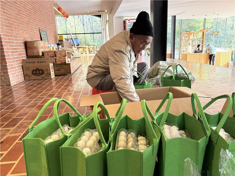 2023年,海洋村嘗試“農(nóng)業(yè)+民宿”,將村里的養(yǎng)殖的土豬、土雞制作成半成品,包裝成禮盒售賣,“去年剛開始只銷售了二十多萬元。今年的銷售情況很好,從2024年底到現(xiàn)在,已經(jīng)售賣了六十多萬元?!?馮源淵笑容滿滿,“進(jìn)入臘月后,已經(jīng)宰殺了二十多頭黑豬,還有致電想要預(yù)定的都沒有了?!?/p>