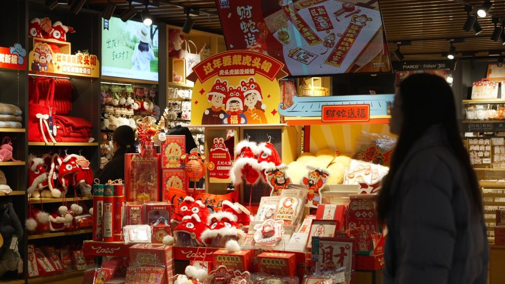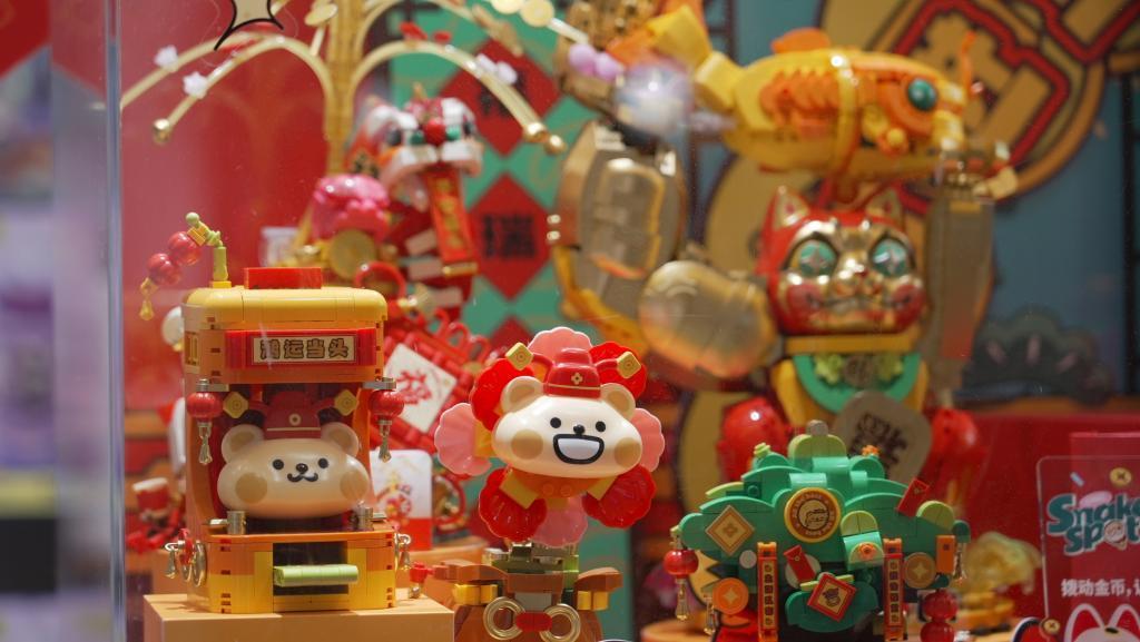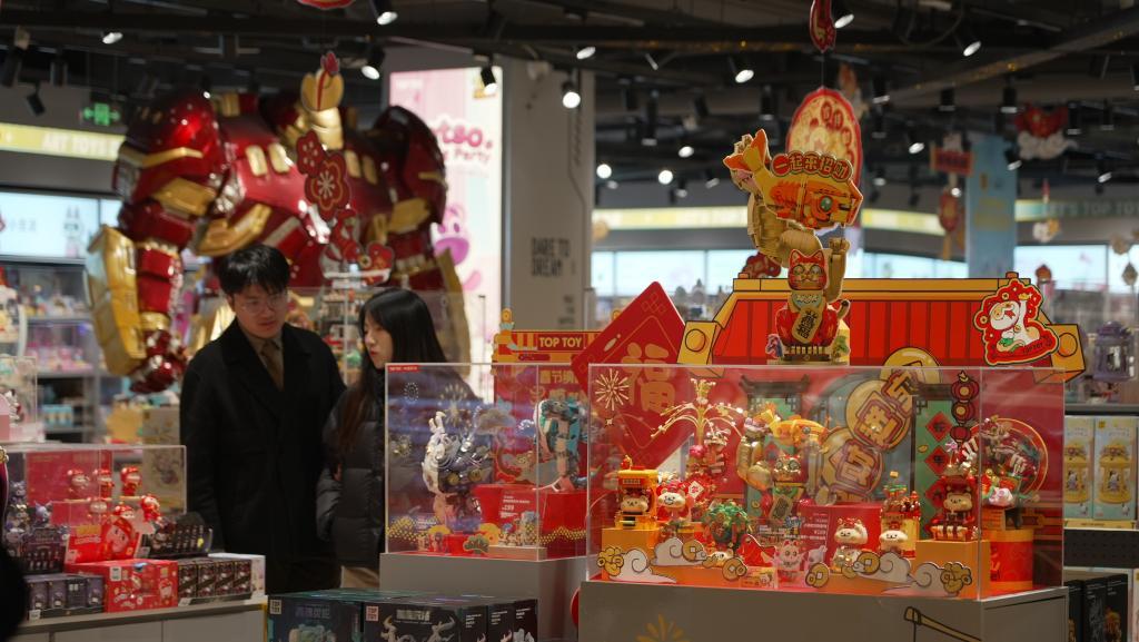 “閑來逛市場,年貨盡琳瑯。”吃食是年味,裝飾是彩頭,年貨市場紅紅火火。在江西南昌一商超內(nèi),購置年貨的消費者人頭攢動。不遠處一家潮玩店也是門庭若市,店內(nèi)潮流人偶戴上“財神帽”,顆粒拼裝的積木花蕊在枝頭綻放,舞獅、錦鯉、招財貓等節(jié)日“使者”穩(wěn)居C位……
