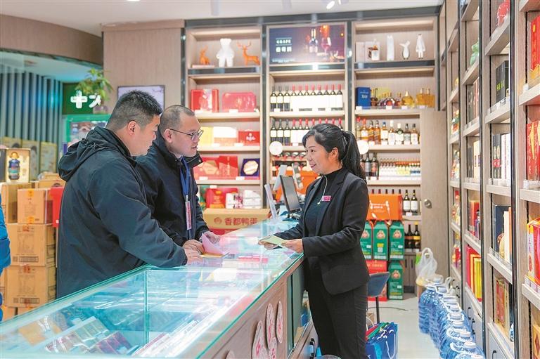 河南省漯河市郾城區(qū)紀(jì)委監(jiān)委緊盯關(guān)鍵節(jié)點(diǎn),成立專項(xiàng)督導(dǎo)組深入轄區(qū)商超、酒店了解情況,嚴(yán)防節(jié)日“四風(fēng)”問題反彈回潮。圖為該區(qū)紀(jì)檢監(jiān)察干部在轄區(qū)商場了解相關(guān)情況。王曉 攝