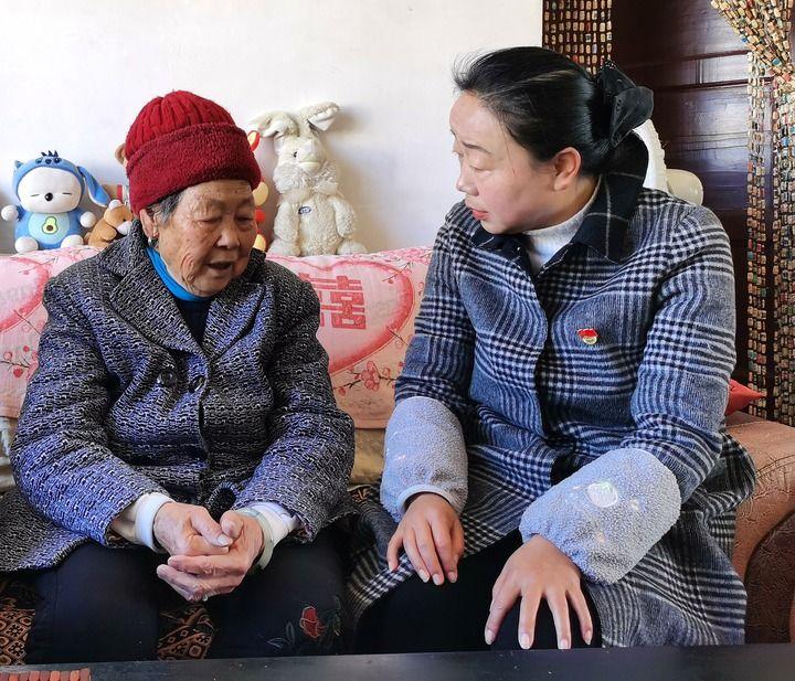 楊汝鈺(右)在社區(qū)一位老人家中進(jìn)行入戶慰問。新華社發(fā)(李建華攝)