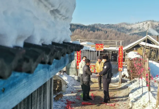 圖為喬繼兵春節(jié)期間到轄區(qū)村屯開展法制安全宣傳。