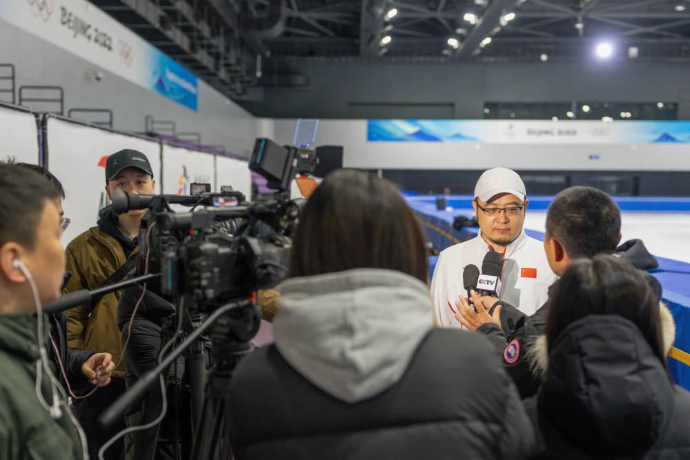 1月21日,中國(guó)短道速滑國(guó)家集訓(xùn)隊(duì)領(lǐng)隊(duì)劉辰宇接受媒體采訪。新華社記者 孫非 攝