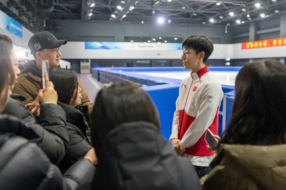 1月21日,中國(guó)短道速滑國(guó)家集訓(xùn)隊(duì)隊(duì)員范可新接受媒體采訪。新華社記者 孫非 攝